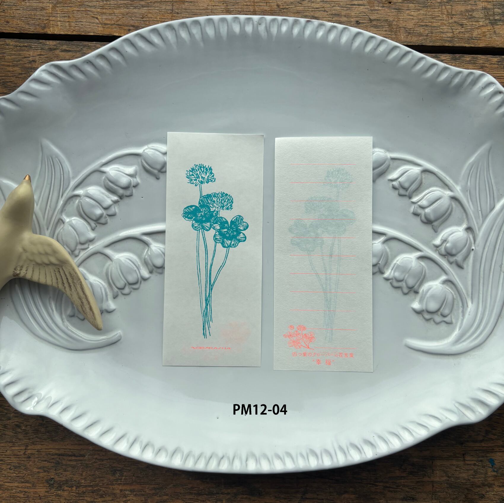 野ばら社の図案集より復刻した「クローバー」の図案を2色のカラーでメモ帖にしました。