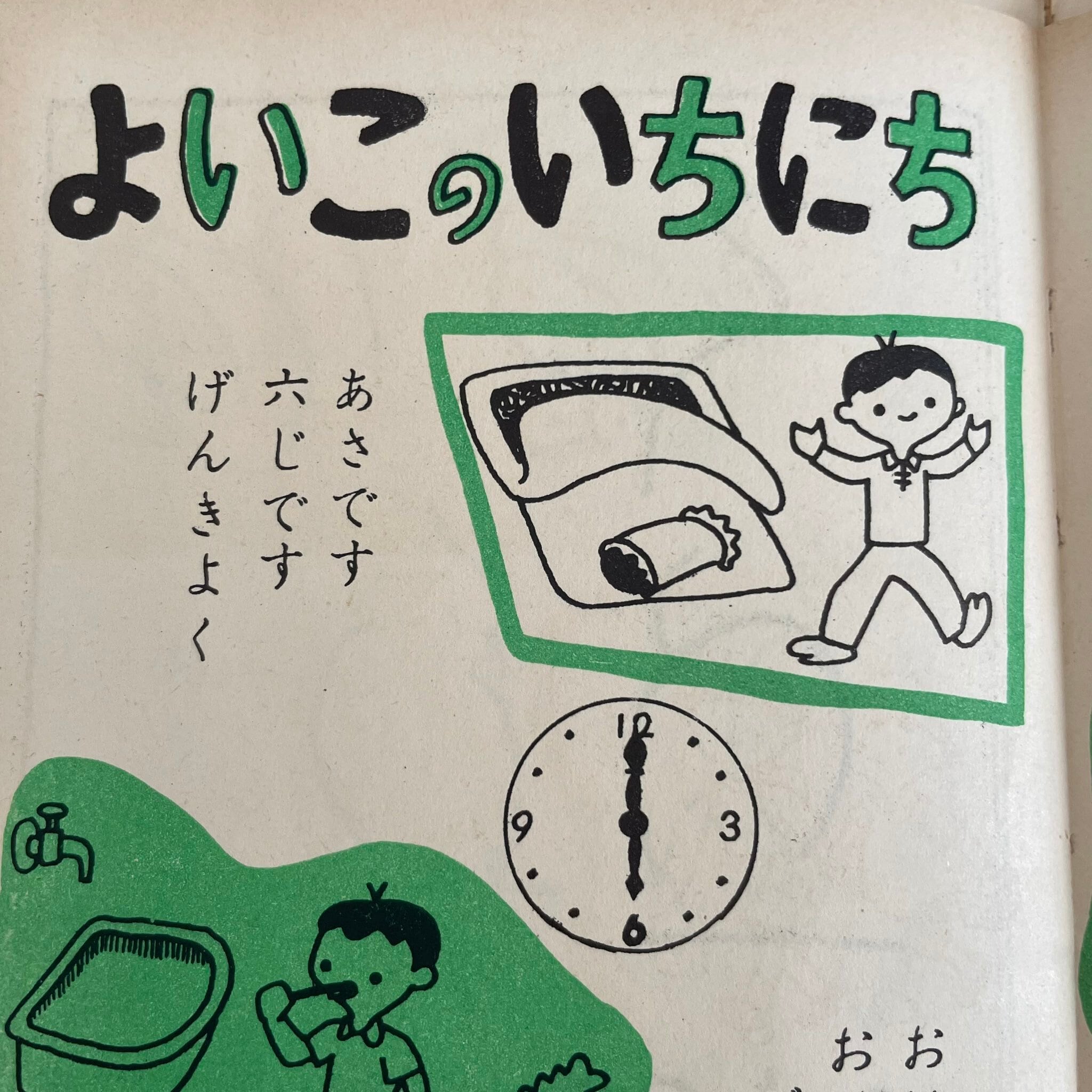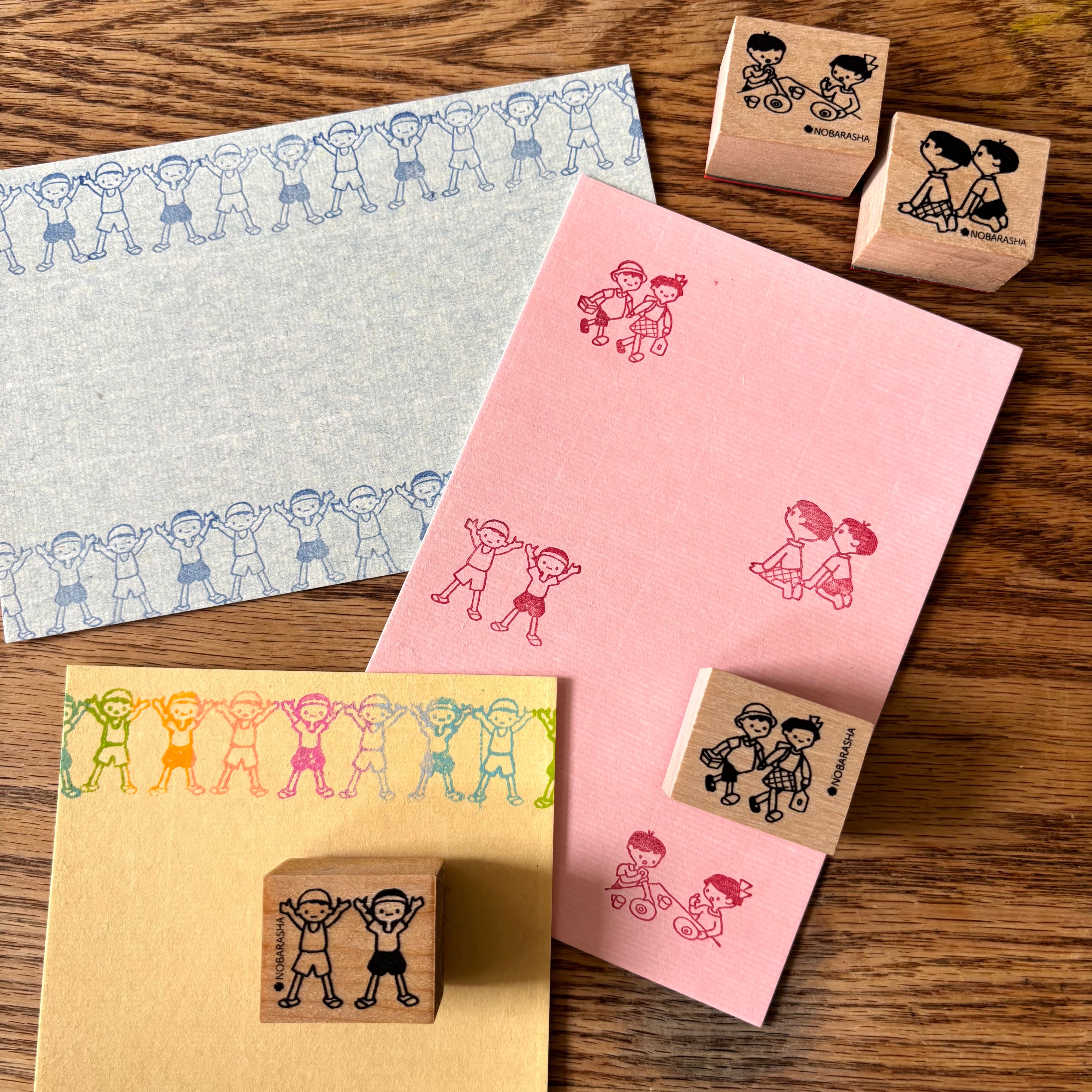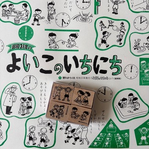 昭和31年野ばら社発行『こどものてちょう』「よいこのいちにち」より健やかに過ごす子どもたちの様子をはんこにしました。