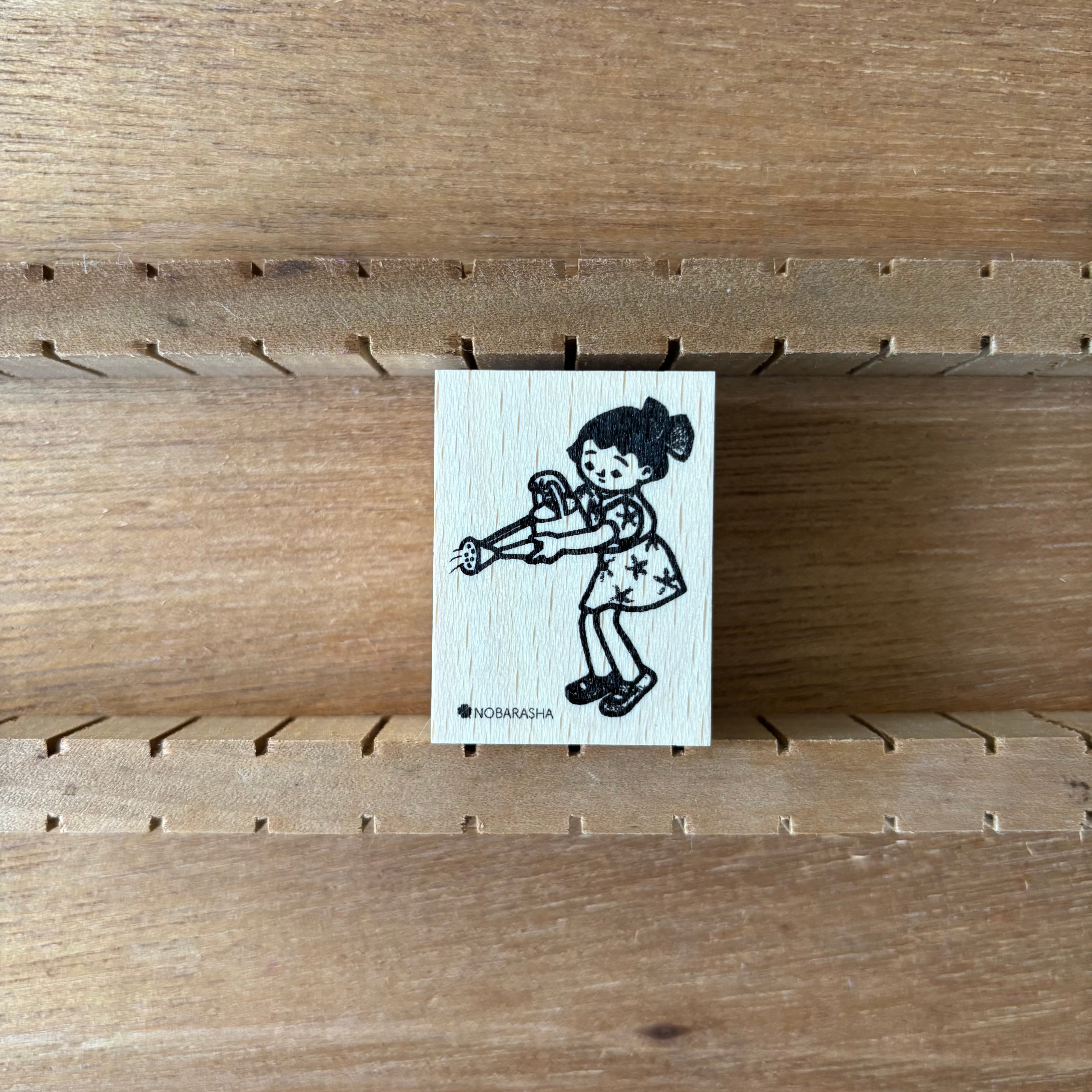 野ばら社の図案集より水やりをする場面をはんこにしました。