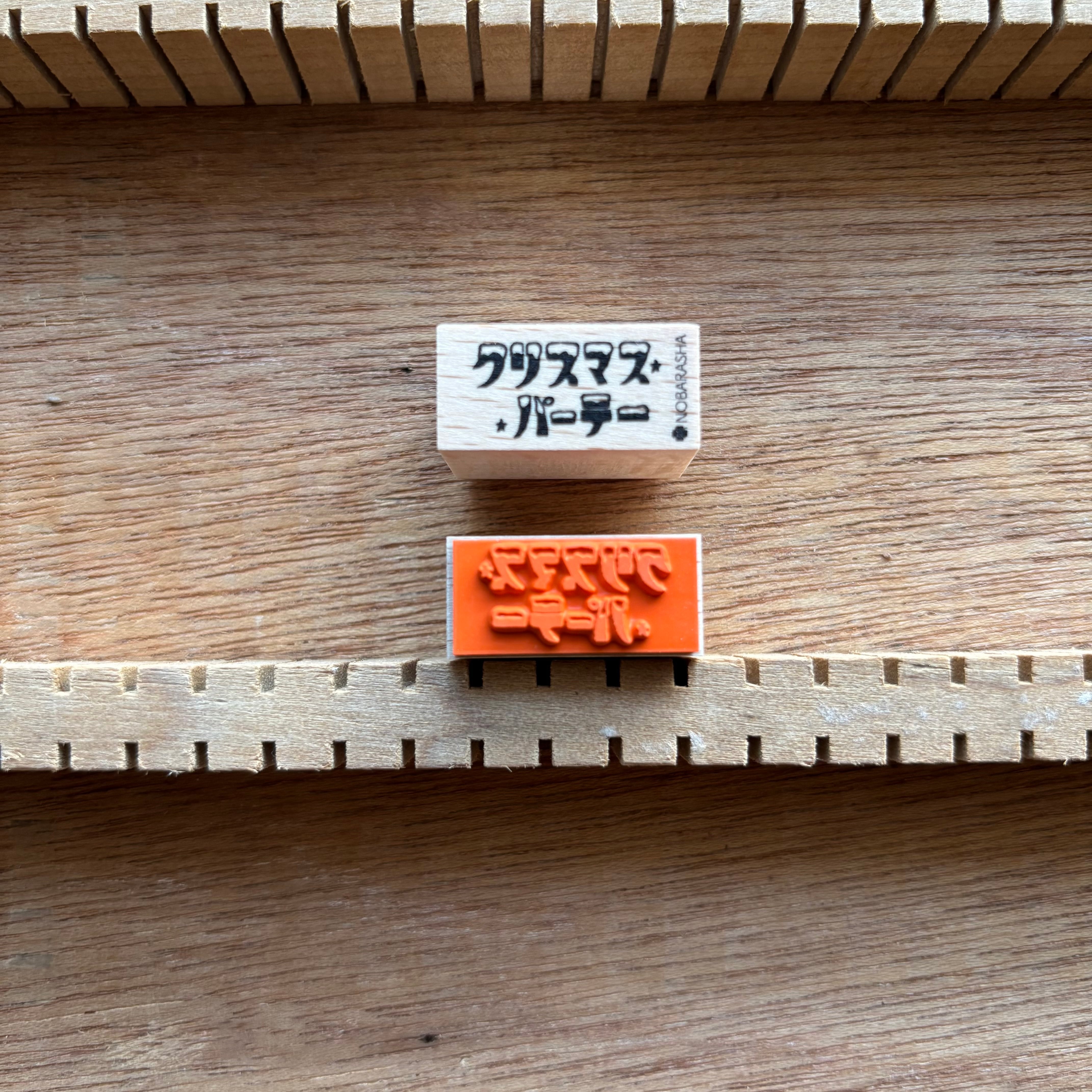 野ばら社の図案集より「クリスマス・パーテー」の文字をはんこにしました。