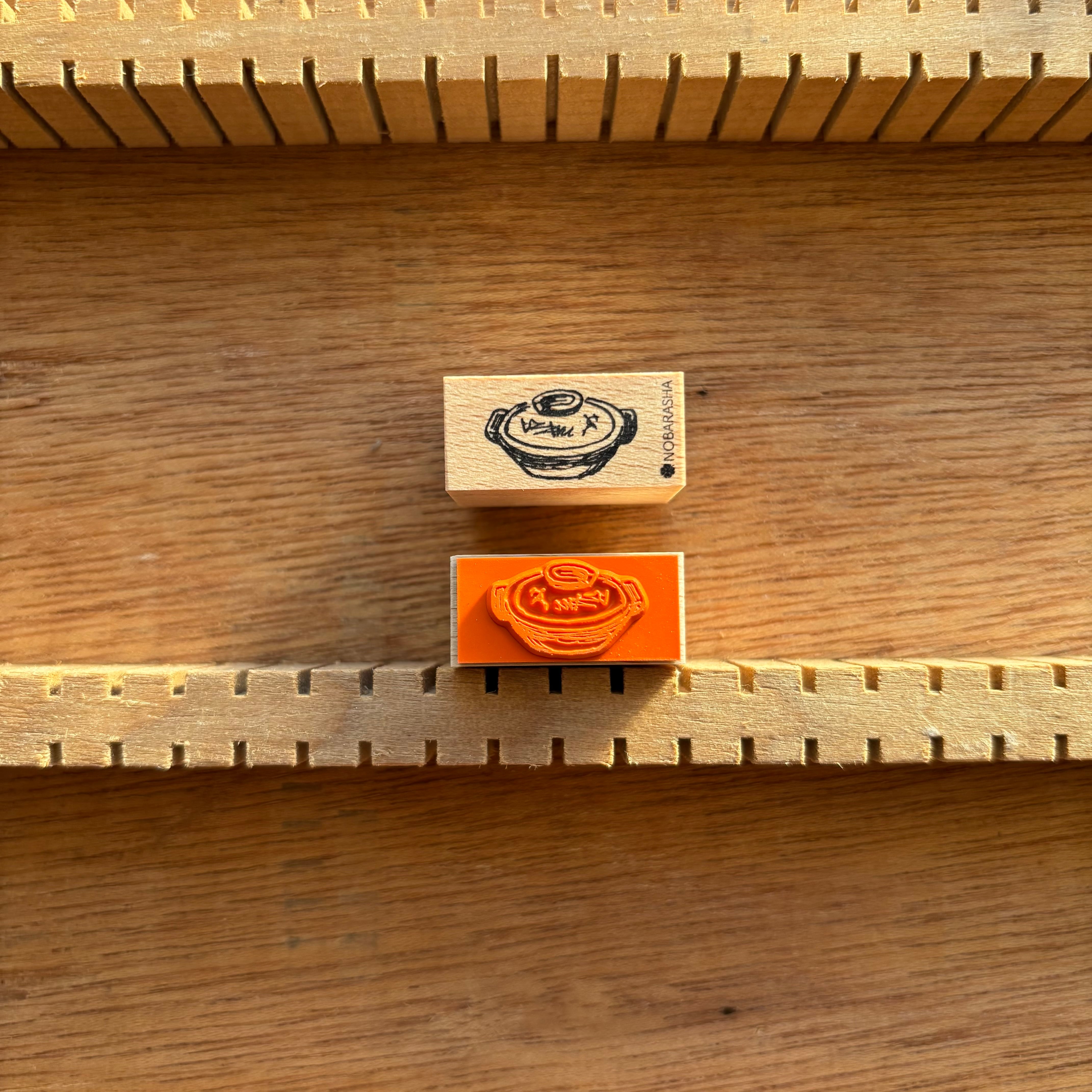 野ばら社の図案集より「お鍋」の図案をはんこにしました。