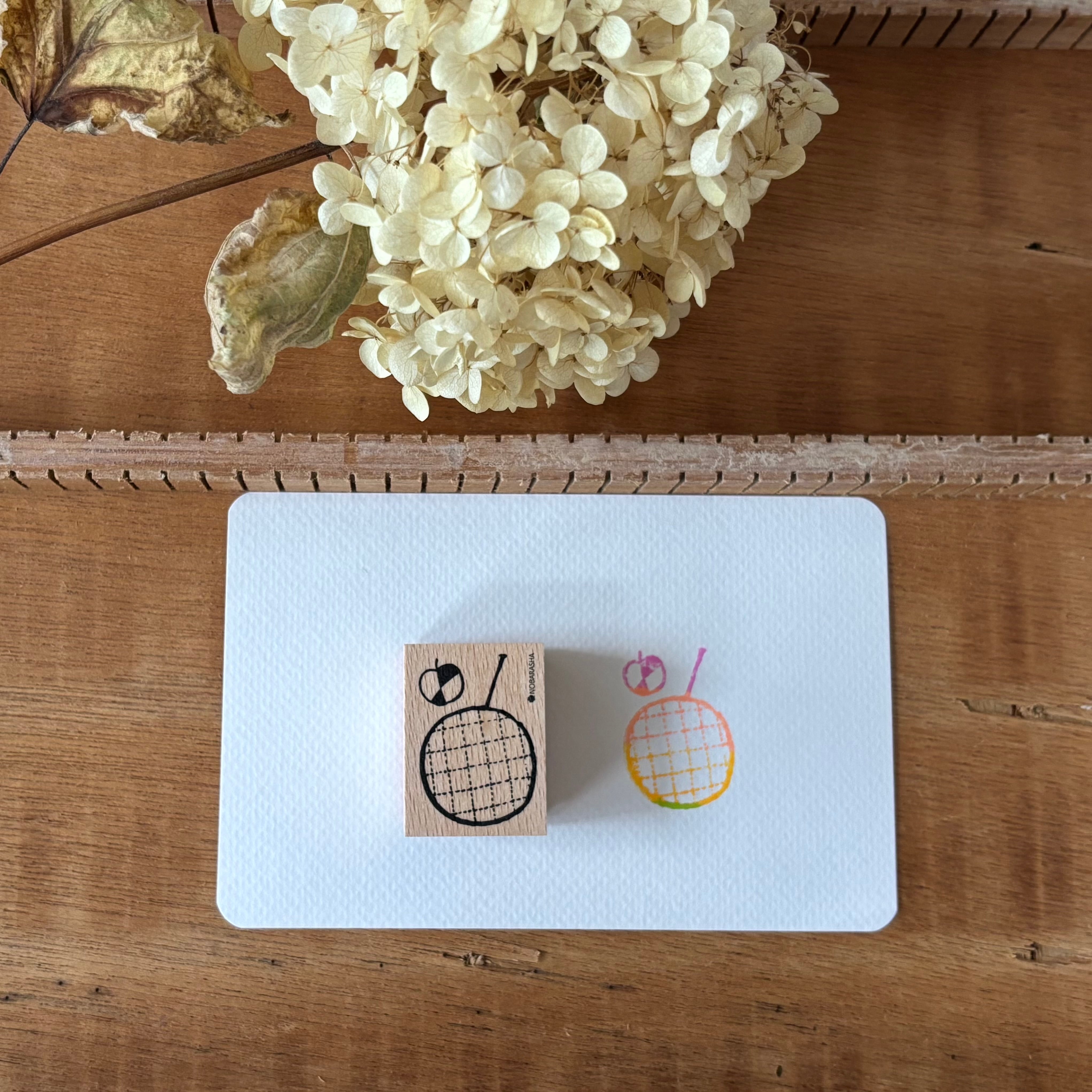 野ばら社の図案集より「メロンとりんご」の図案をはんこにしました。