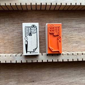 野ばら社の図案集より「万年筆・作文用紙・インク」の図案をはんこにしました。