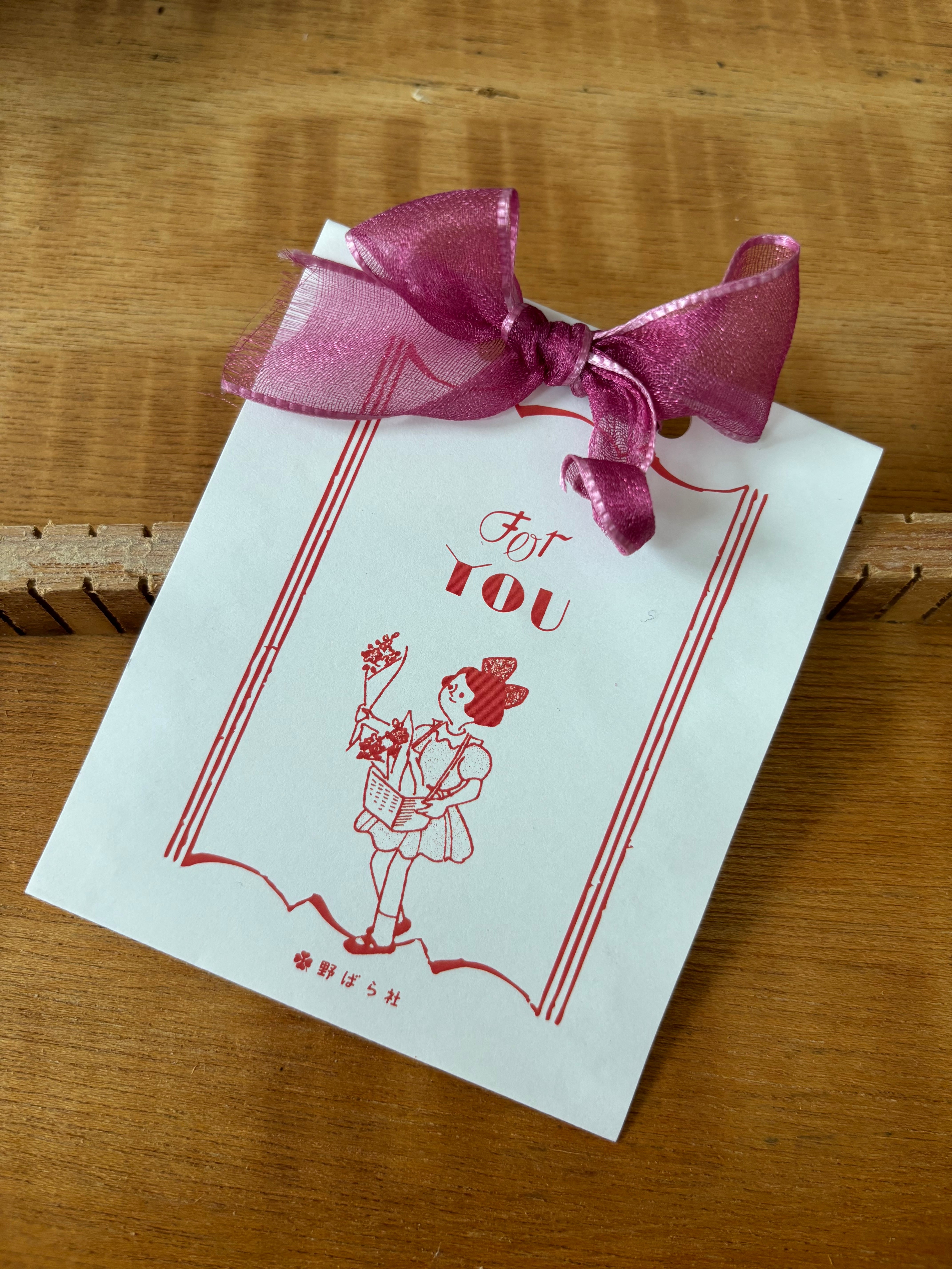 花粉症の方に「疫病退散」ポチ袋でのど飴を差し上げたり、「 For you 」にプチギフトを入れたり…!