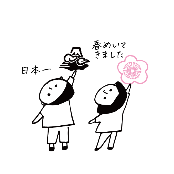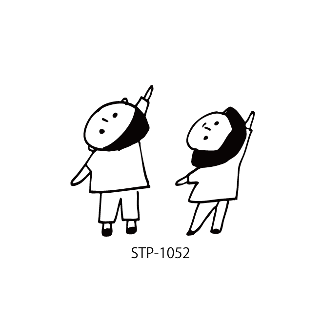 野ばら社の図案集より右手を上げるポーズの子ども二人の図案をはんこにしました。