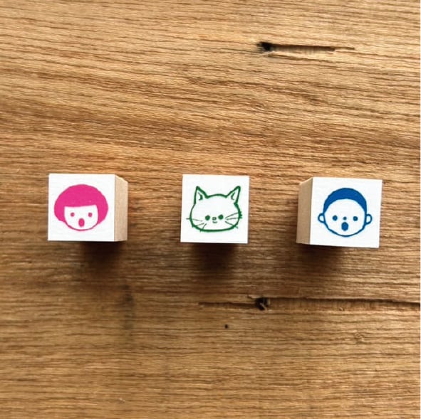 野ばら社の図案集より顔の図案をはんこにしました。