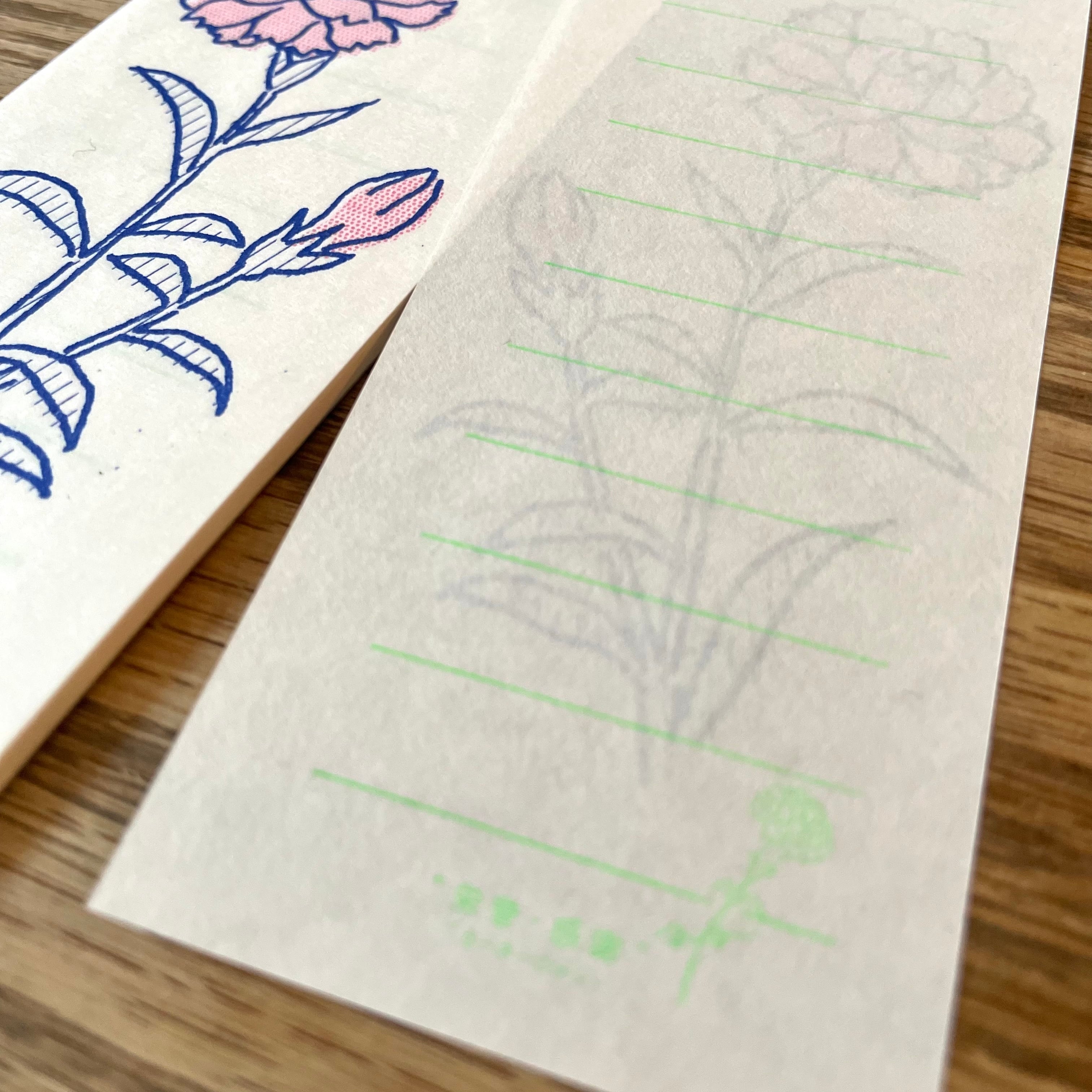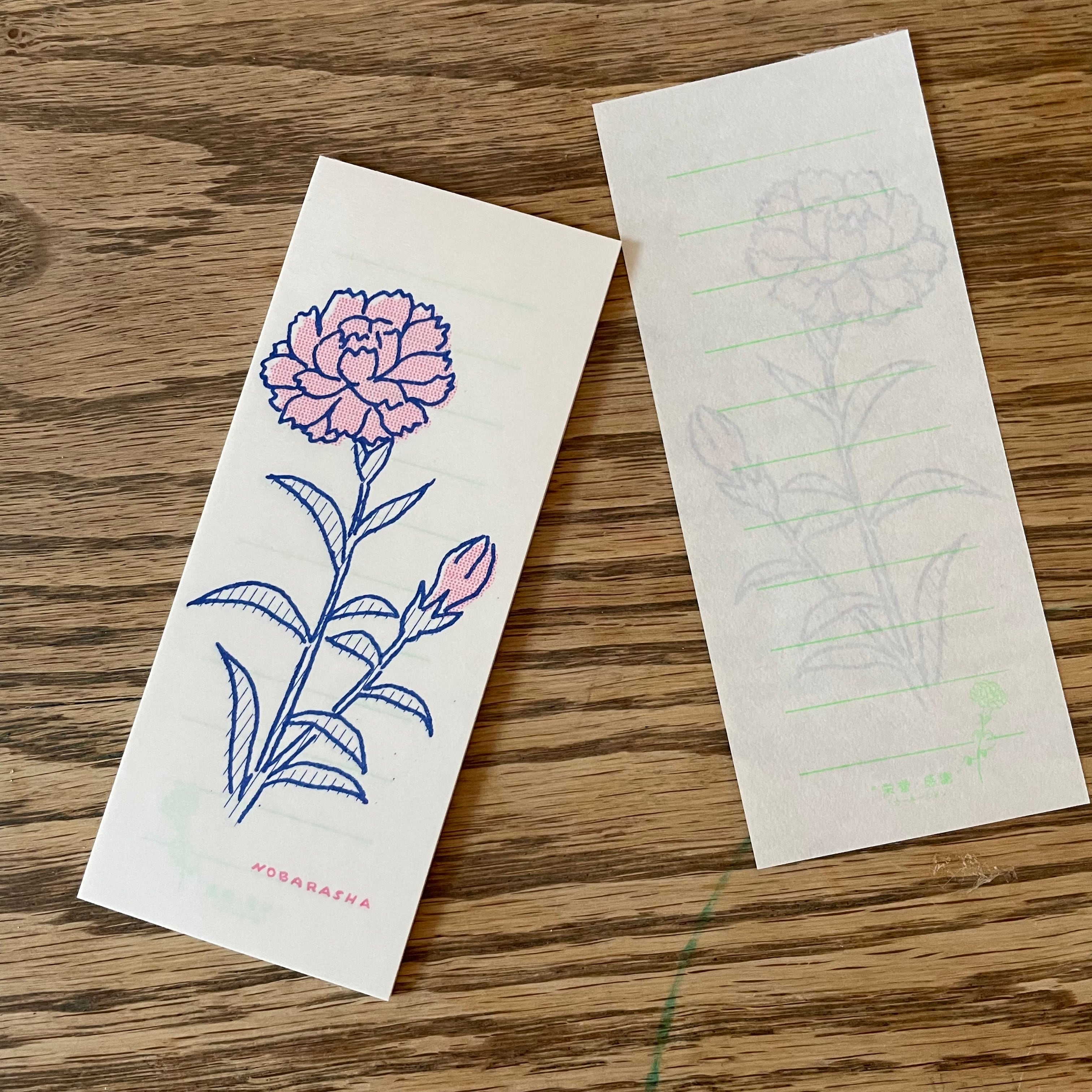 野ばら社『図案辞典』より復刻した「カーネーション」の図案を2色のカラーでメモ帖にしました。