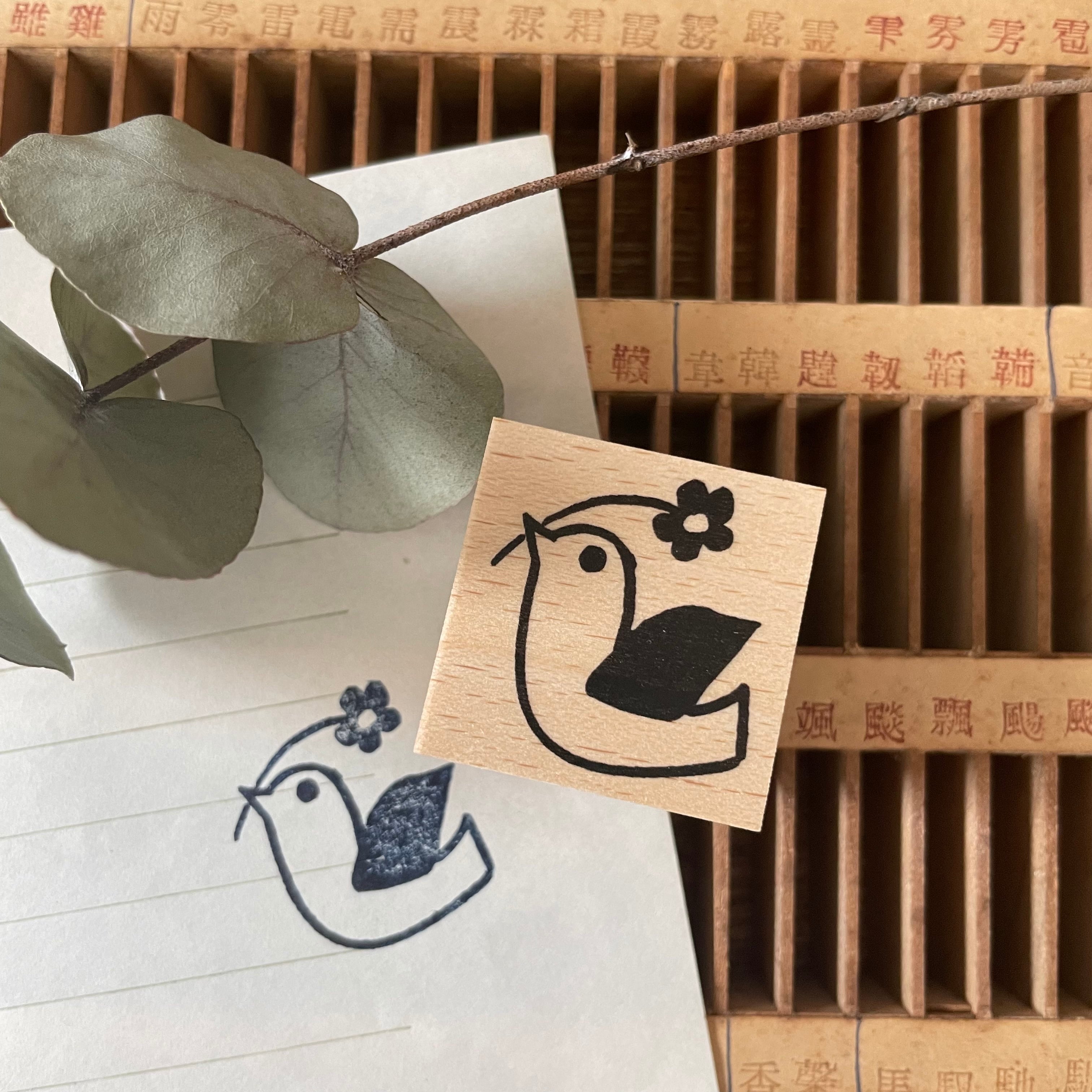 野ばら社図案のはんこ・花を運ぶ鳥|STP-009