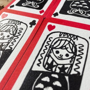 野ばら社の昭和図案を使用して作った「不思議の国のアリス」トランプ風カードです。