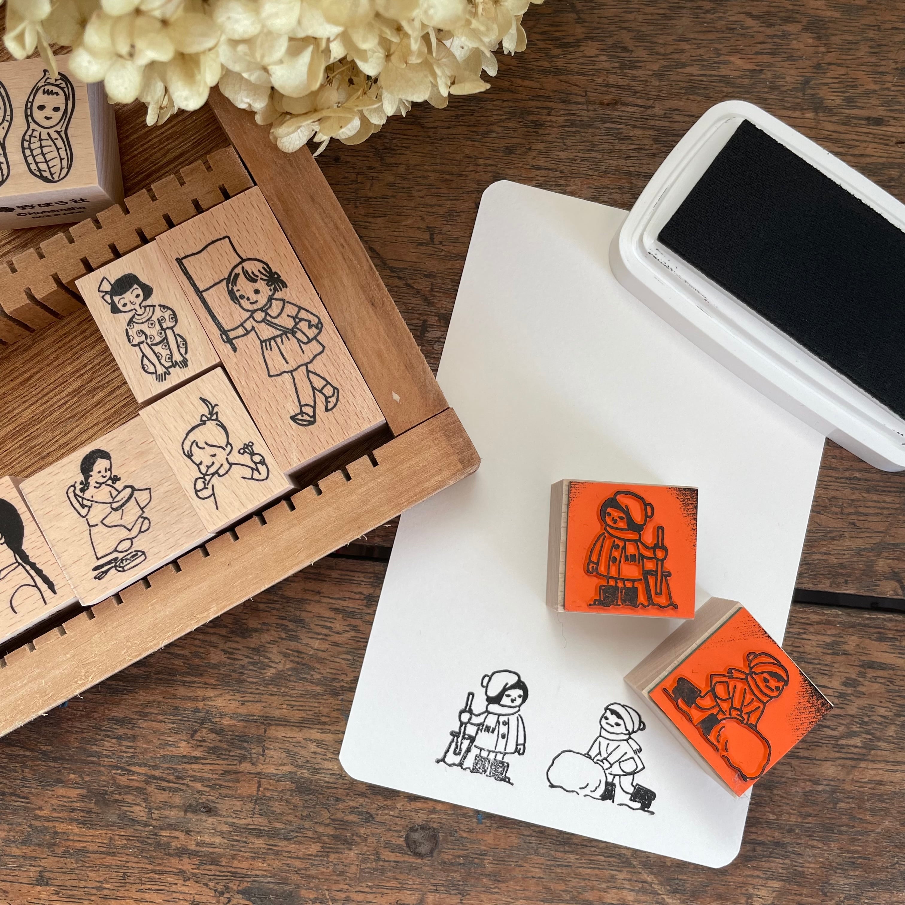 野ばら社図案のはんこ・雪の子1(女の子)|STP-2-01